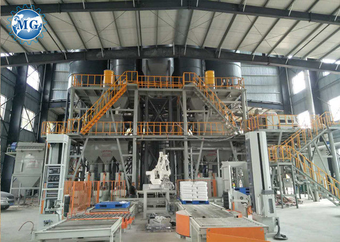 La máquina para fabricar adhesivo para baldosas de la serie MG se basa en el último concepto de diseño en Europa, esta producción adopta el sistema avanzado de control automático por computadora, cuya capacidad de producción puede alcanzar de 30 a 100 mil toneladas por año, dependiendo de la configuración del sistema. La línea de producción consta de sistema de almacenamiento, sistema de medición y dosificación, sistema de transporte, sistema de mezcla, sistema de compresor de aire, sistema de envasado y sistema de desempolvado, etc.